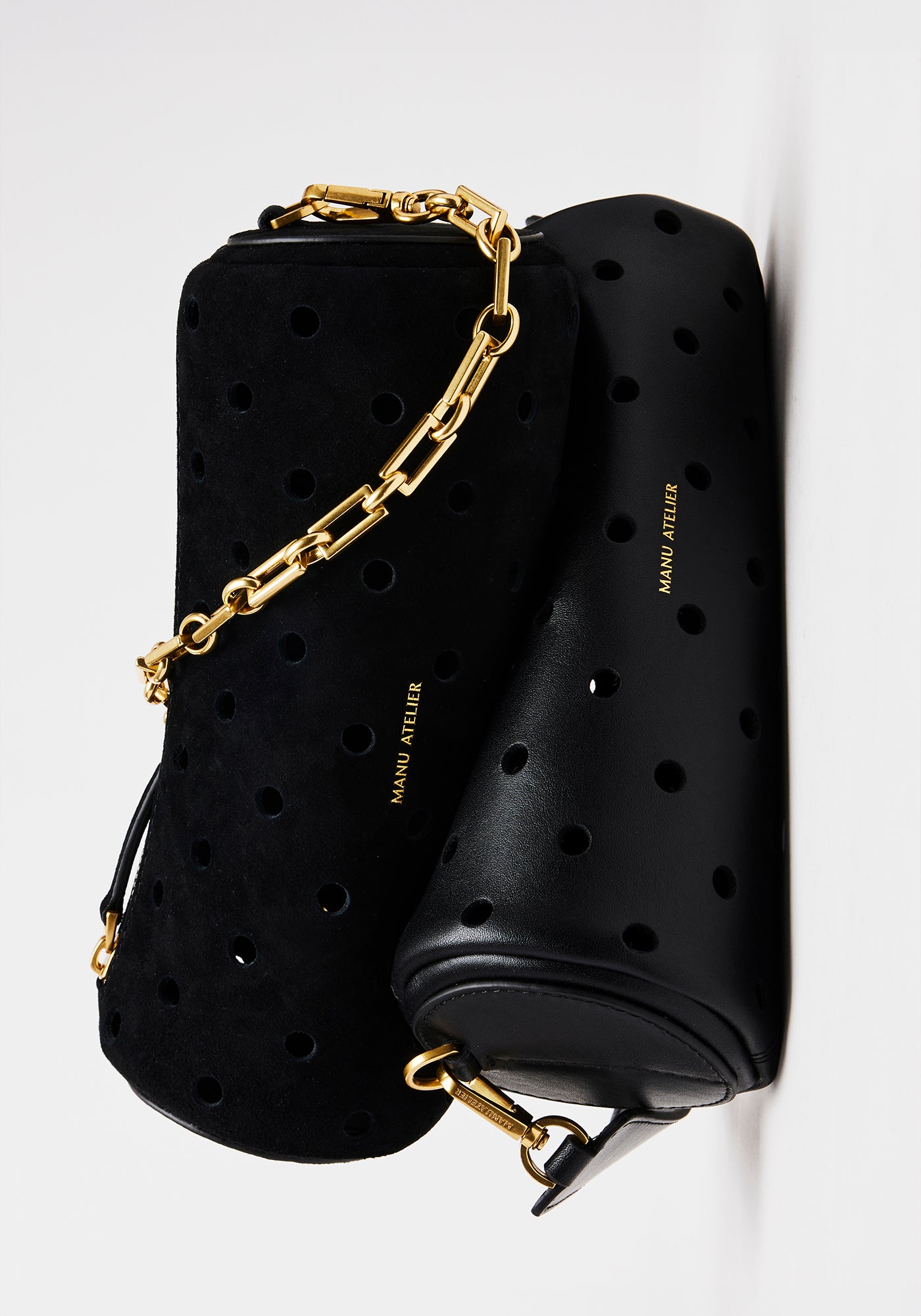 Mini Cylinder Perforated Black Suede