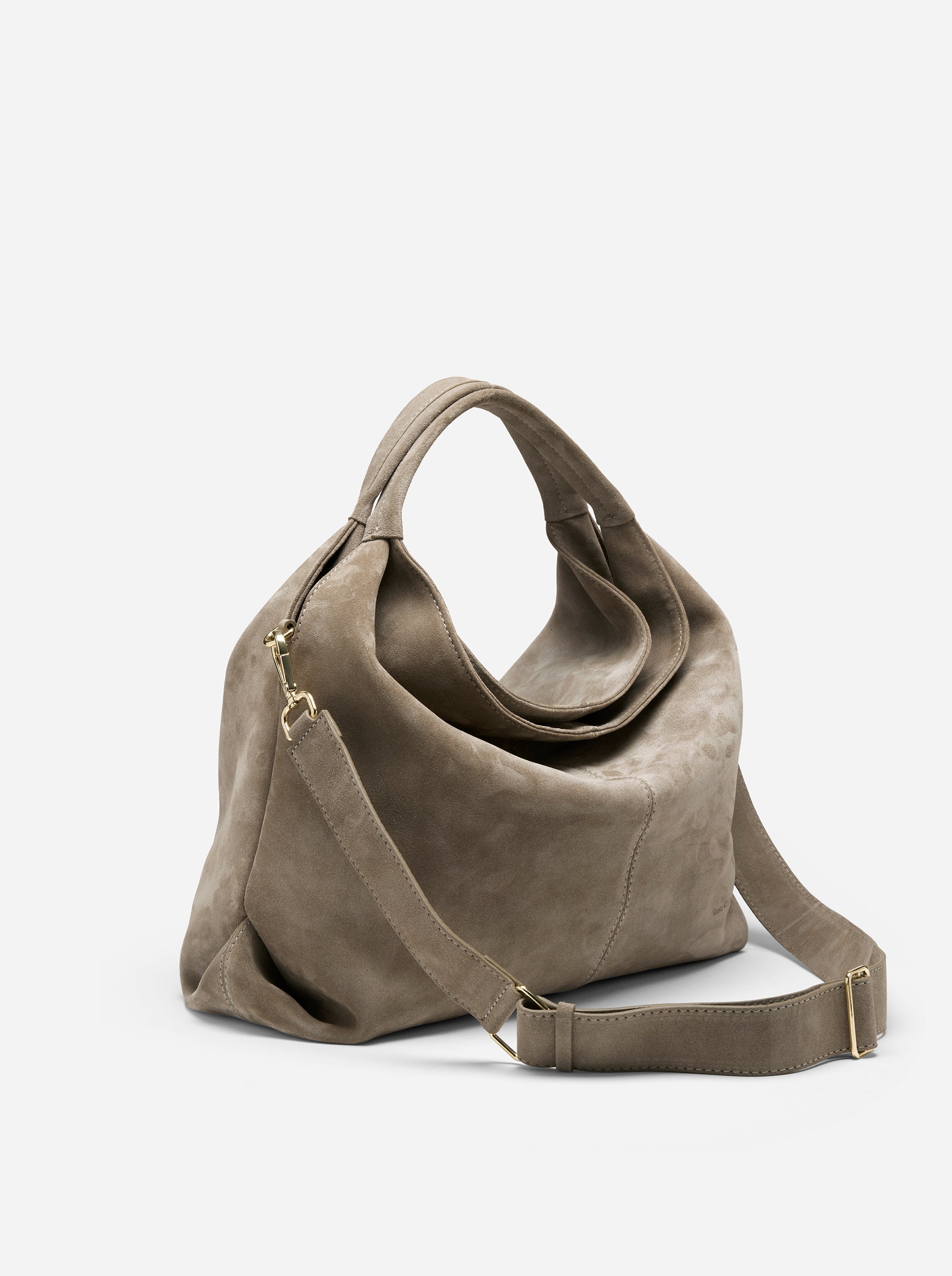The adjustable leather strap offers versatile wear, allowing it to be styled as a elegant shoulder bag or a sophisticated crossbody. With its unique blend of timeless elegance and contemporary flair, the Gala Sughero Suede bag is a must-have accessory that seamlessly transitions from day to night. Discover the unparalleled craftsmanship and distinctive design of Manu Atelier.