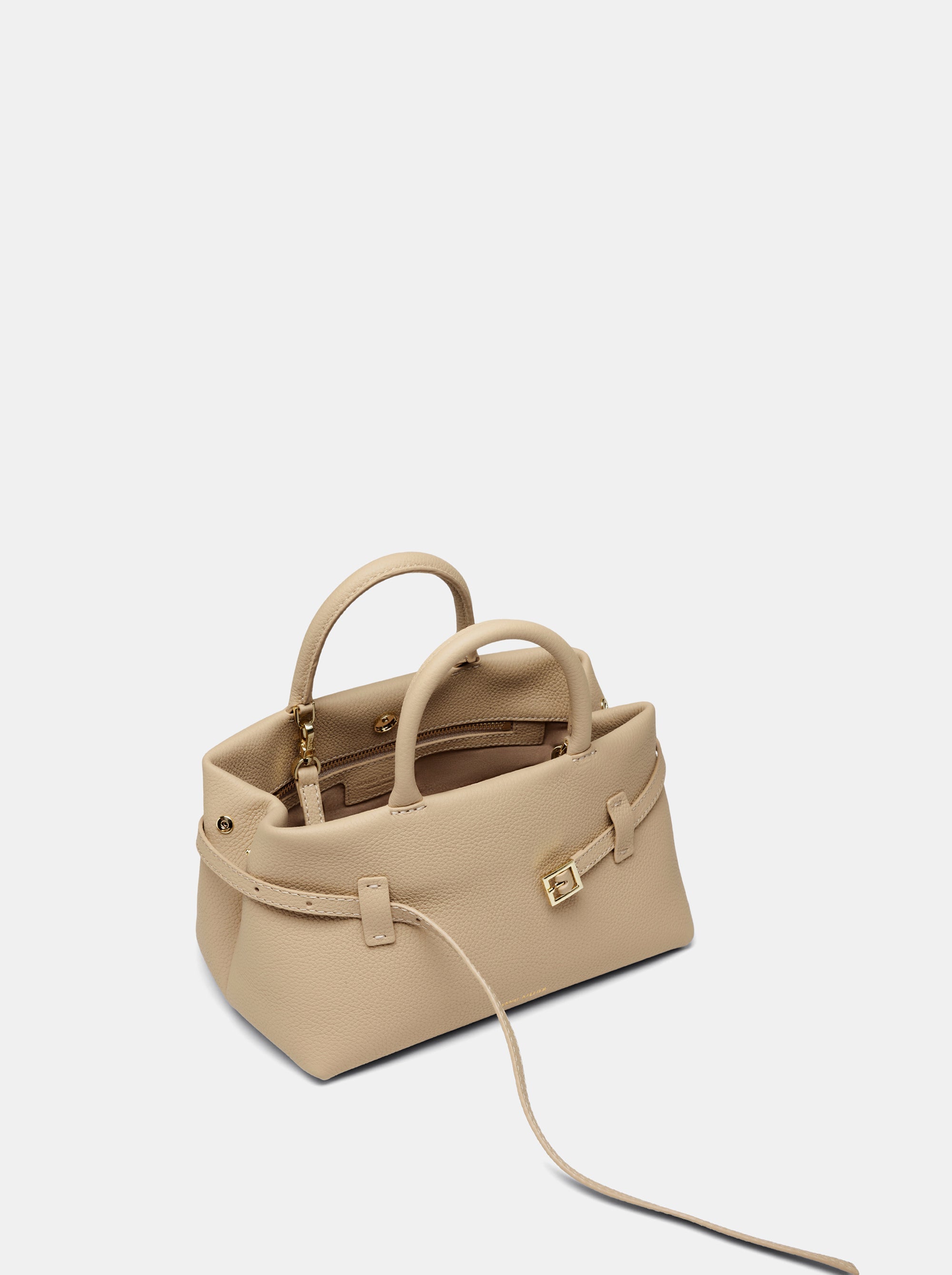 The Manu Atelier Le Cambon 25 Cream brings understated charm to the modern wardrobe. Smooth, premium camel-hued leather forms a structured bag with practical top handles and an adjustable strap. The interior offers a beige lining and a zipped pocket, ensuring organization for on-the-go needs.