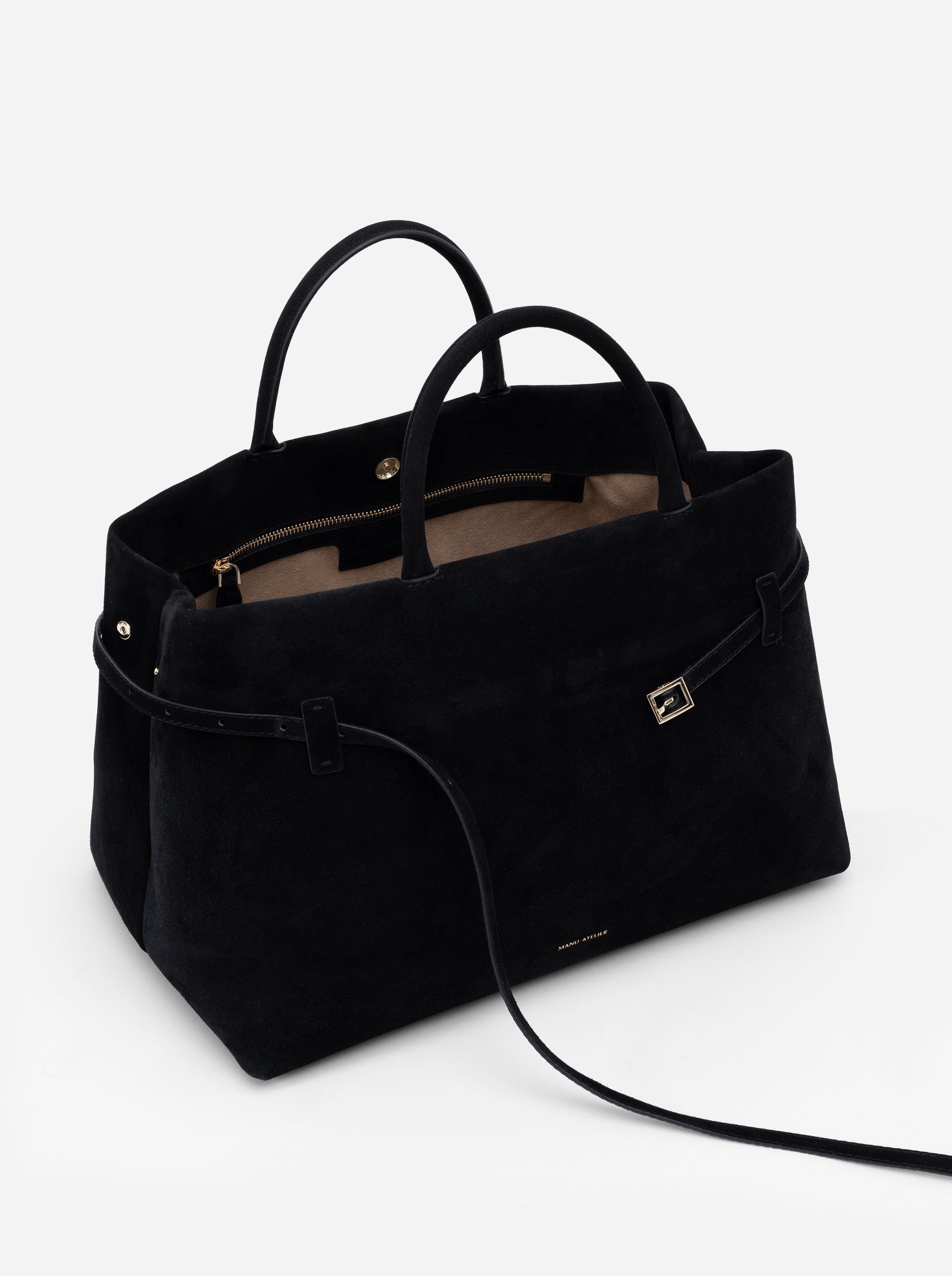 Introducing the latest addition to the Manu Atelier signature pieces, the Le Cambon 40 - a fusion of simplicity and artistry crafted to effortlessly fit into your daily life. Designed with suede leather, this bag blends sophistication with practicality, accommodating a 16-inch MacBook and offering a spacious, softly structured shape for all your essentials. Evolved from the design of Tote du Jour, it transforms the daily bag into a more classic and sophisticated version. With refined contours, two top handles, and a magnetic closure, it elevates everyday style to the next level. This statement piece exudes both practicality and elegance, making it a definitive expression of modern sophistication.