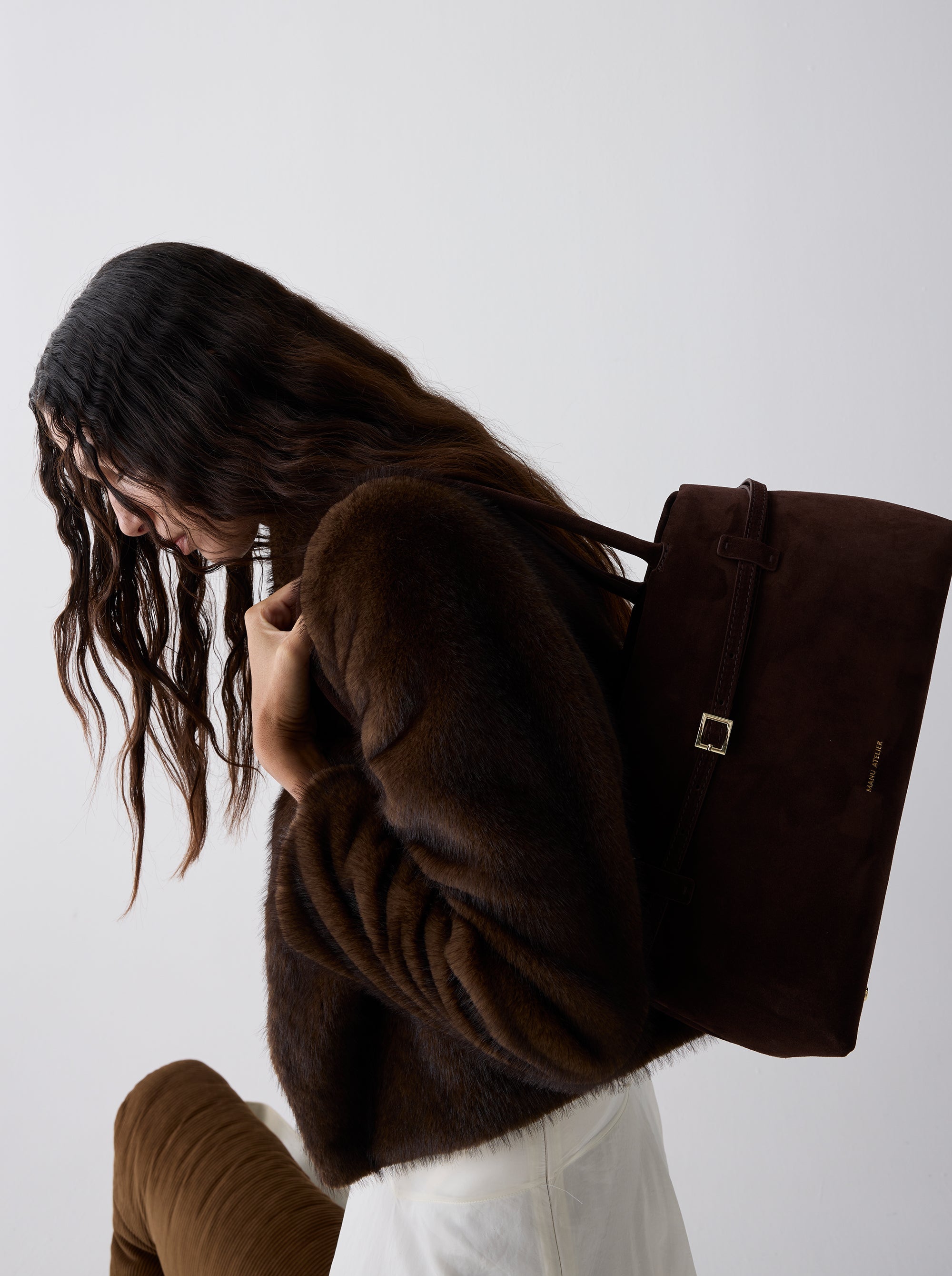 Interior zipped pocket with a Manu Atelier embossed logo
