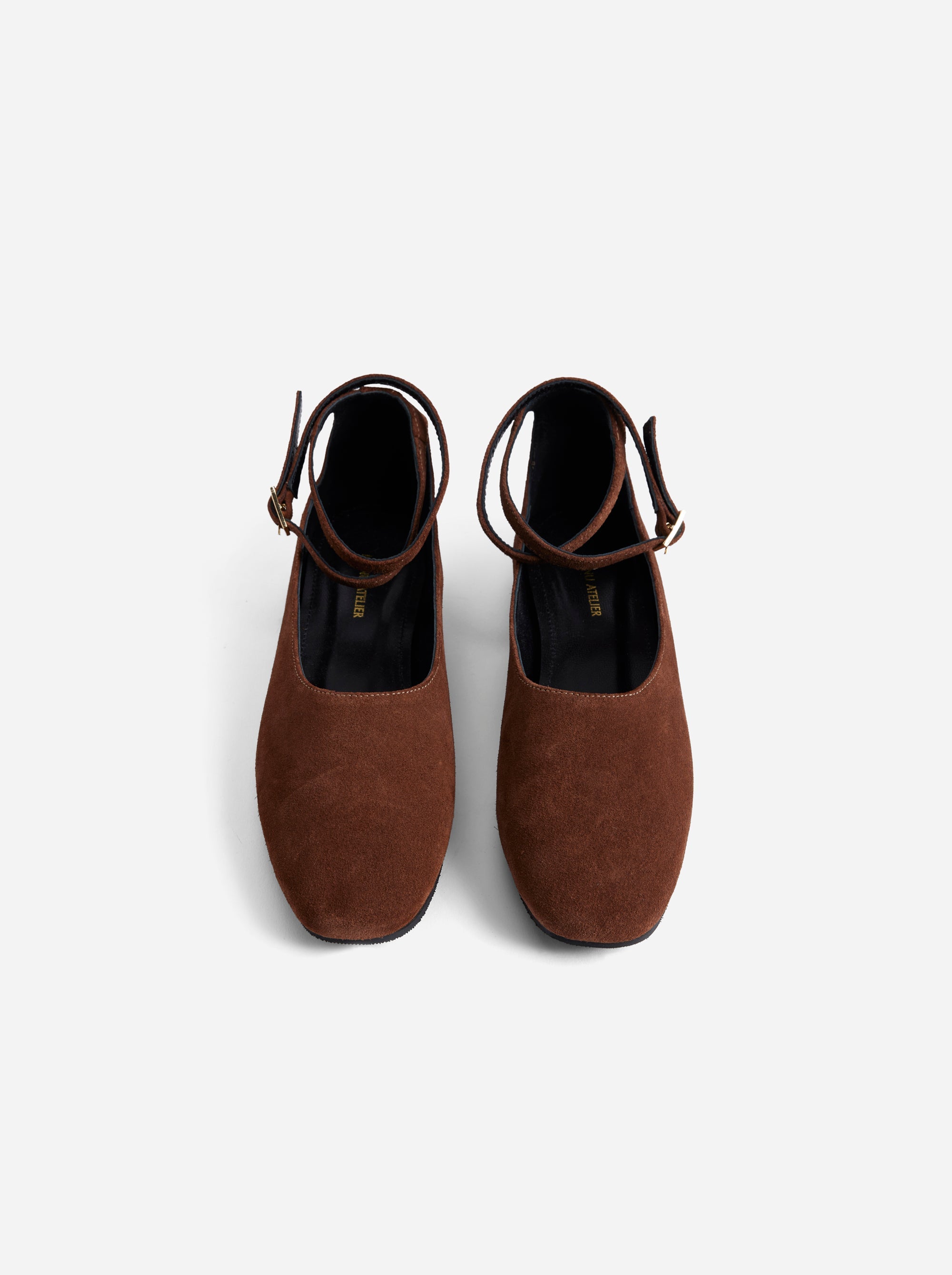 Manu Ballet Flats With Cross Over Ankle Strap Chocolate Suede