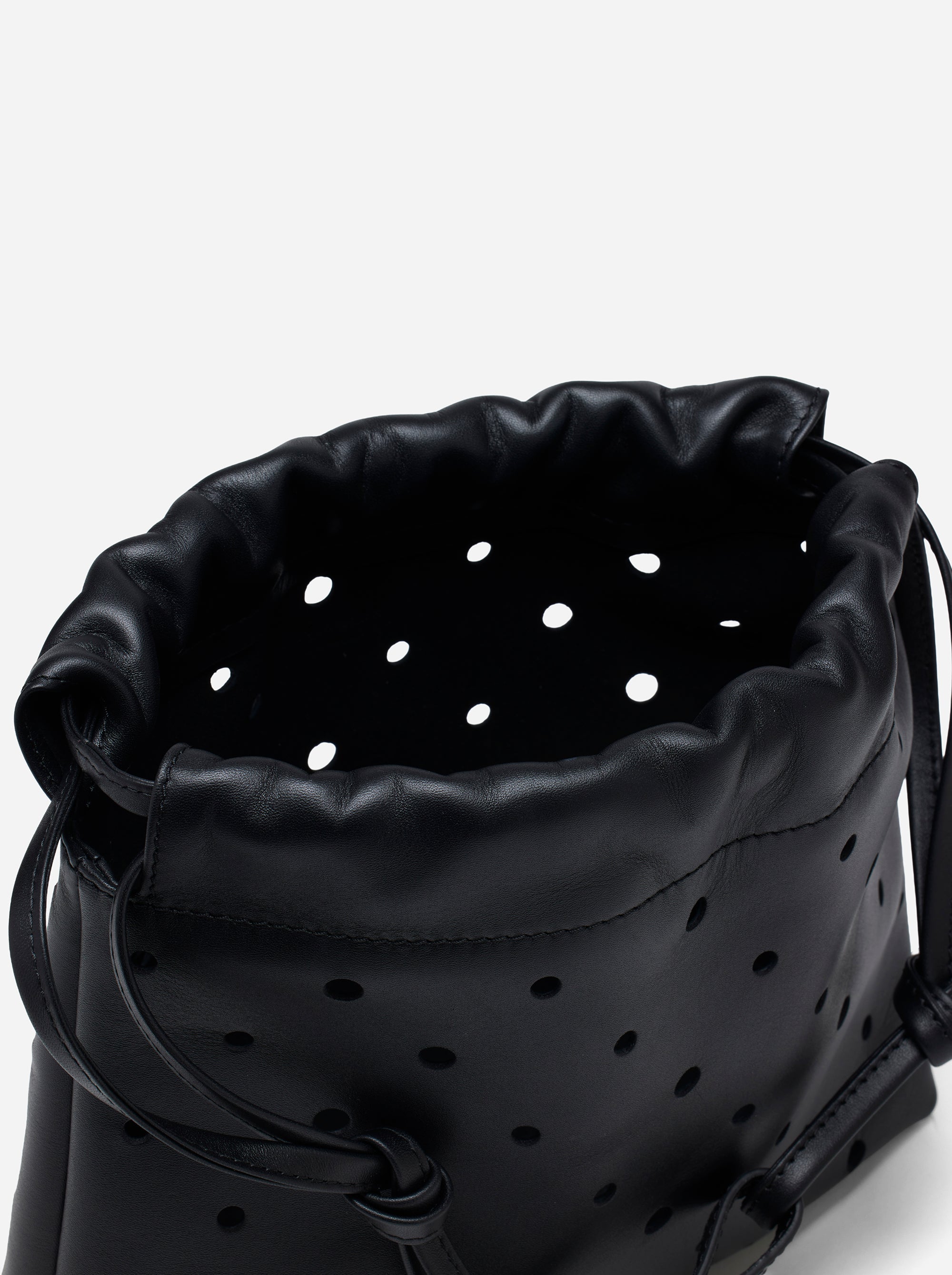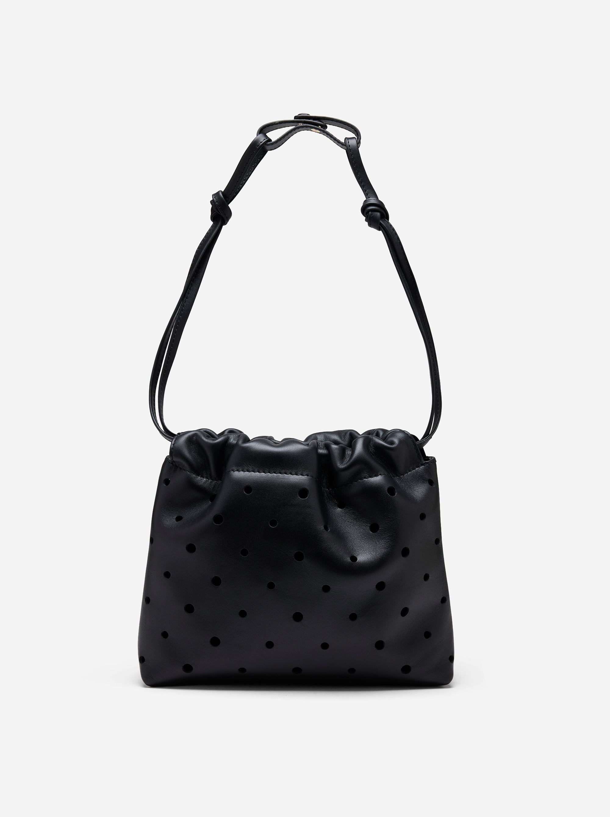 Softly structured yet playfully undone, the Romy Pouch introduces Manu Atelier’s modern approach to craftsmanship. Made from perforated leather both inside and out it highlights the beauty of pure material and meticulous construction. The drawstring construction gathers the leather into gentle, sculptural folds, creating a sense of natural movement and effortless refinement. Designed with versatility in mind, its slender leather strap can be detached, transforming the Romy into a sleek and effortless clutch.