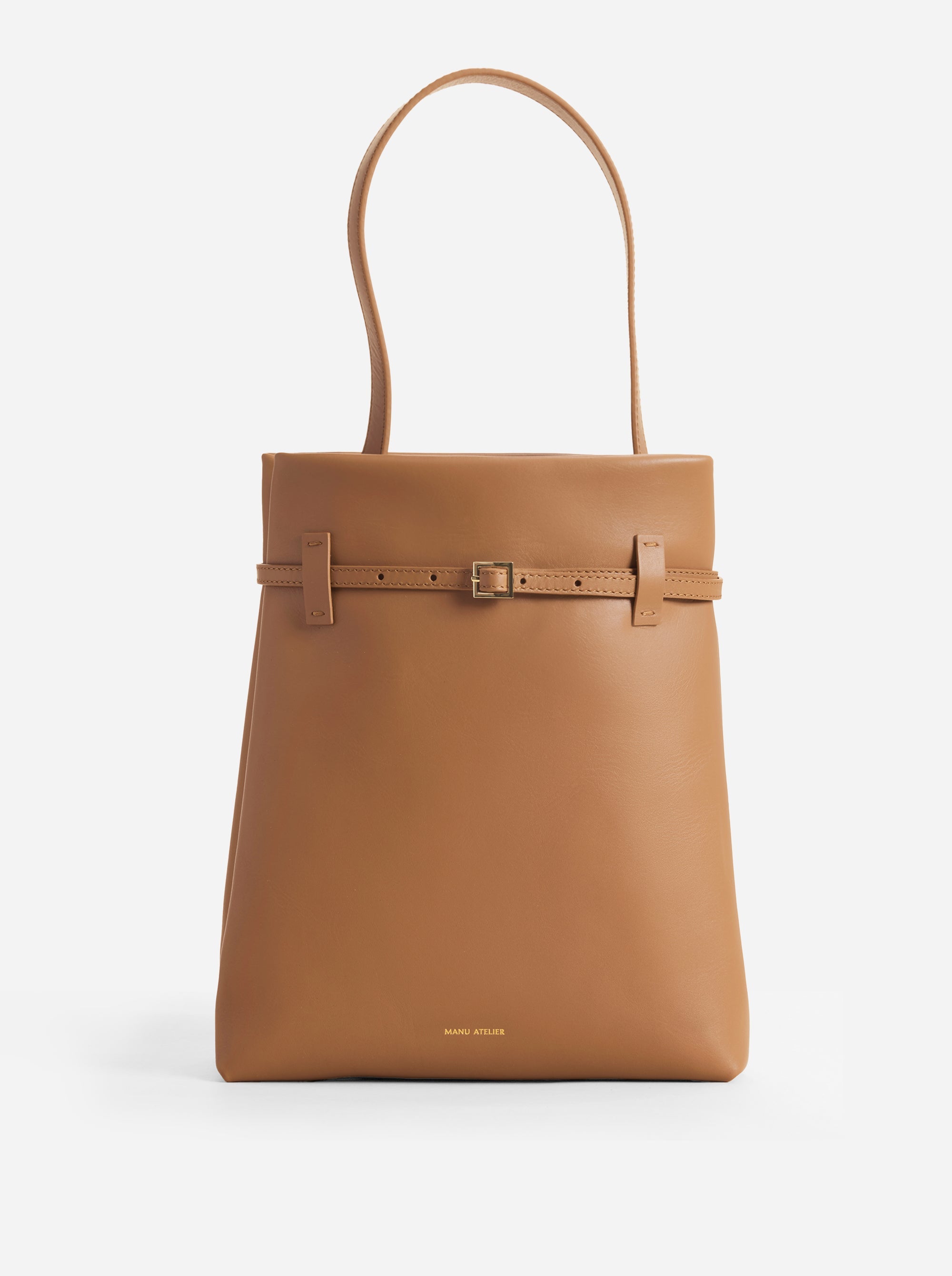 This new style from the Resort24 collection places simplicity, craftsmanship, and sleek details at the forefront, underscoring a sense of freedom while keeping in step with the pace of metropolitan life. With its spacious interior which has a zipped pocket and four card slots, the Tote du Jour bag can fit a 13’’ MacBook Pro and all your everyday essentials. The adjustable leather belt with light gold-toned metal buckle adds a touch of sleek distinction. Magnet closure offers an ease of use. The signature light-gold toned “Manu Atelier” logo is embossed on the bottom center of the front panel. It’s a statement piece embodying a combination of functionality and sophistication.